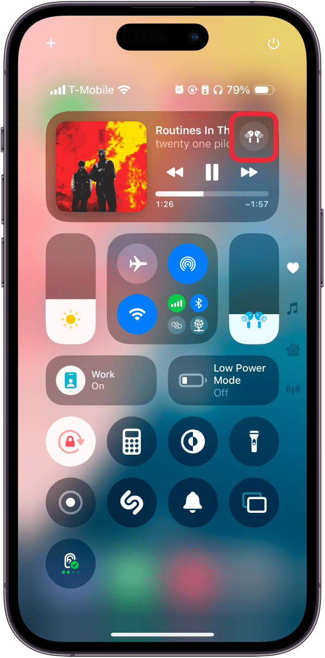 - 点击AirPods 图标在媒体播放器小部件中。如果您运行的是 iOS 18 并且删除了媒体小部件,则需要将其添加回来或向下滚动才能找到它。