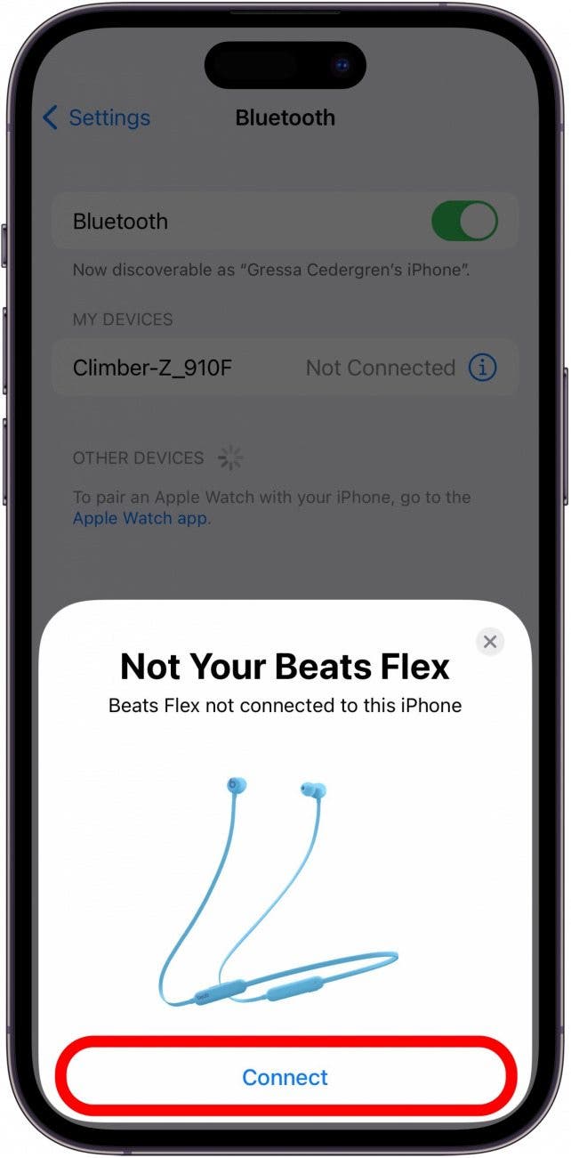- 您的 Beats 图像将出现在您的 iPhone 上。轻敲连接。