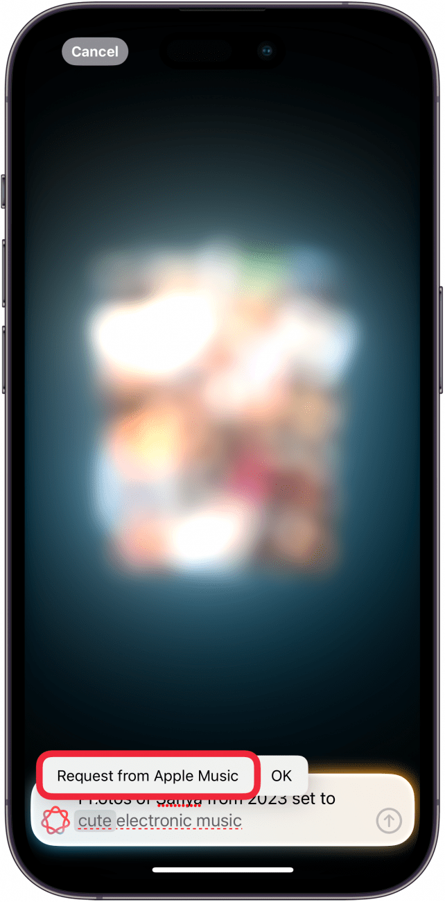 - 您会看到所有照片组合在一起的动画,并且 AI 可能会要求您提供其他信息,例如请求您从 Apple Music 中选择歌曲。