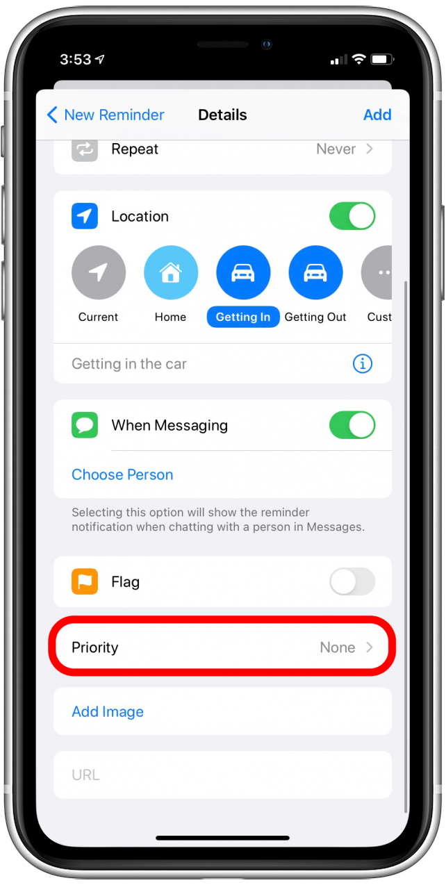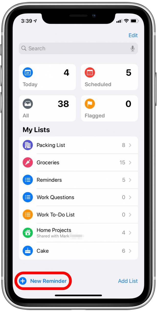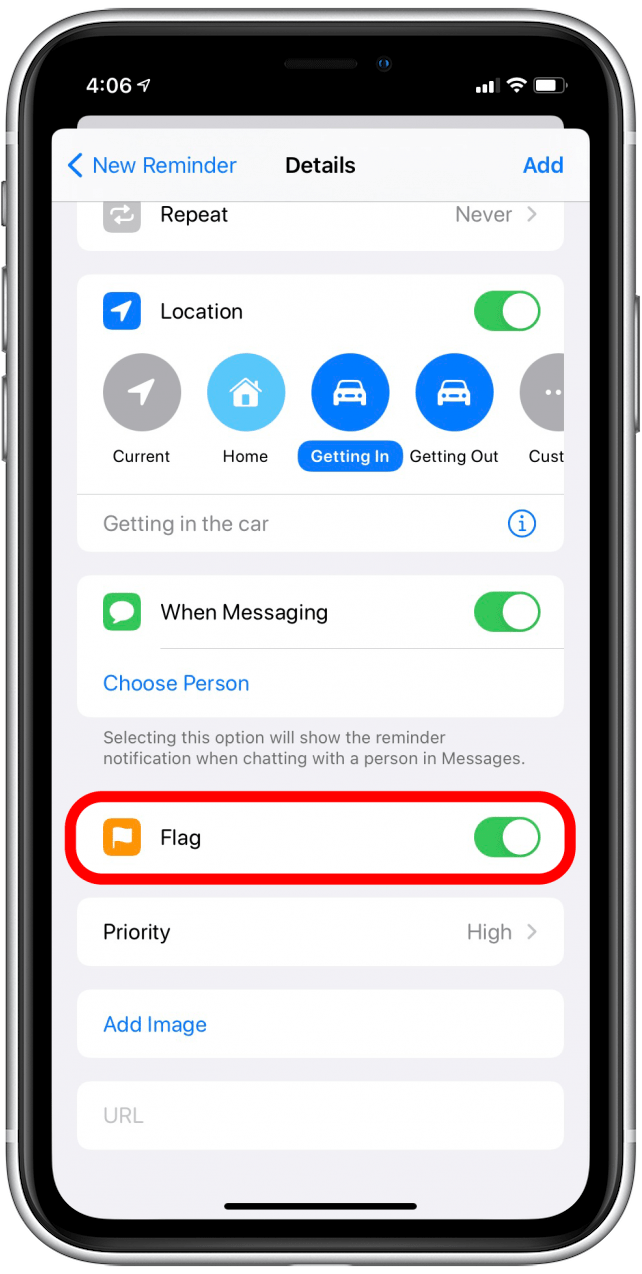 - 点击标志切换将提醒标记为紧急。这还会将其添加到提醒应用程序主屏幕上的标记提醒智能列表中。