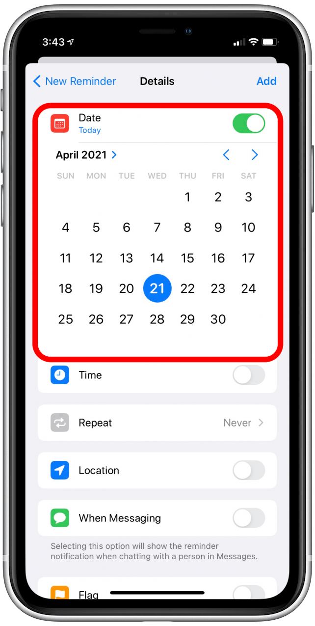 - 点击日期切换如果您希望在特定日期收到提醒,请使用日历选择一个日期。