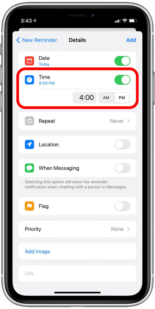 - 点击时间切换设置一天中的特定时间来提醒您。