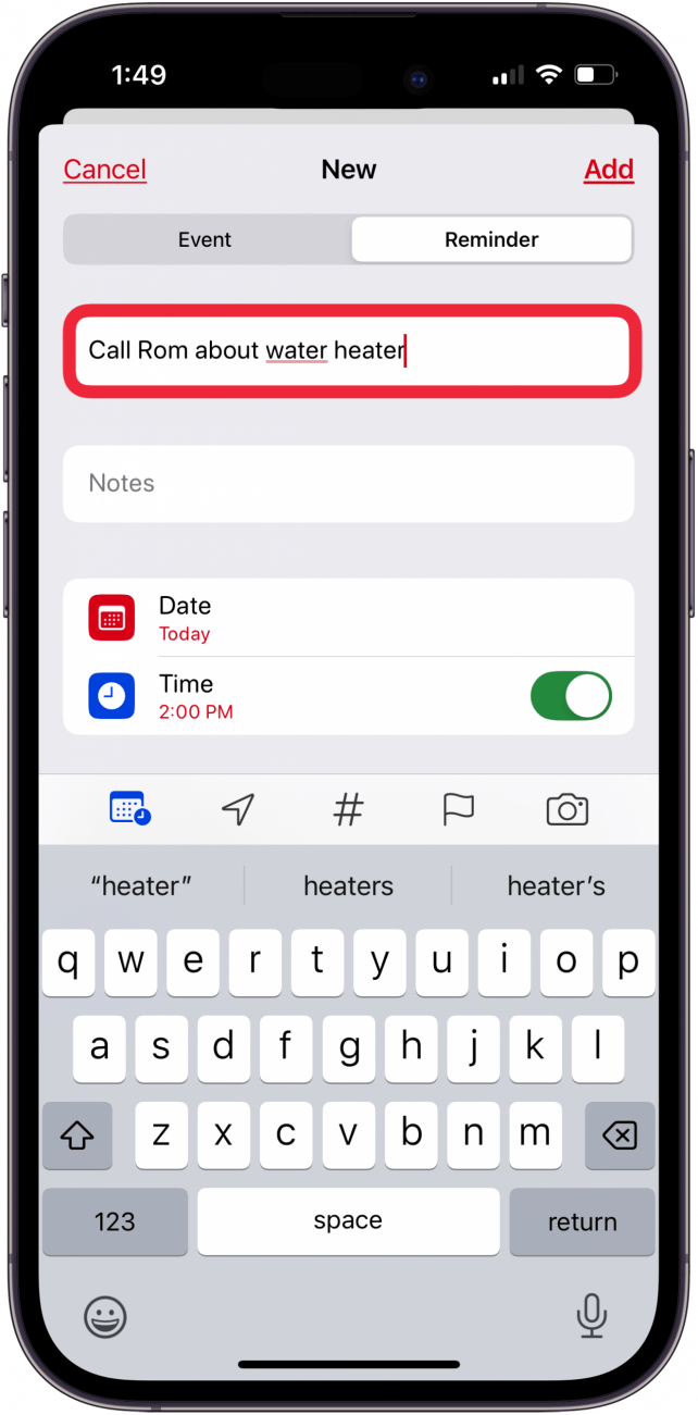 - 轻敲提醒事项在下面新的,然后输入标题。