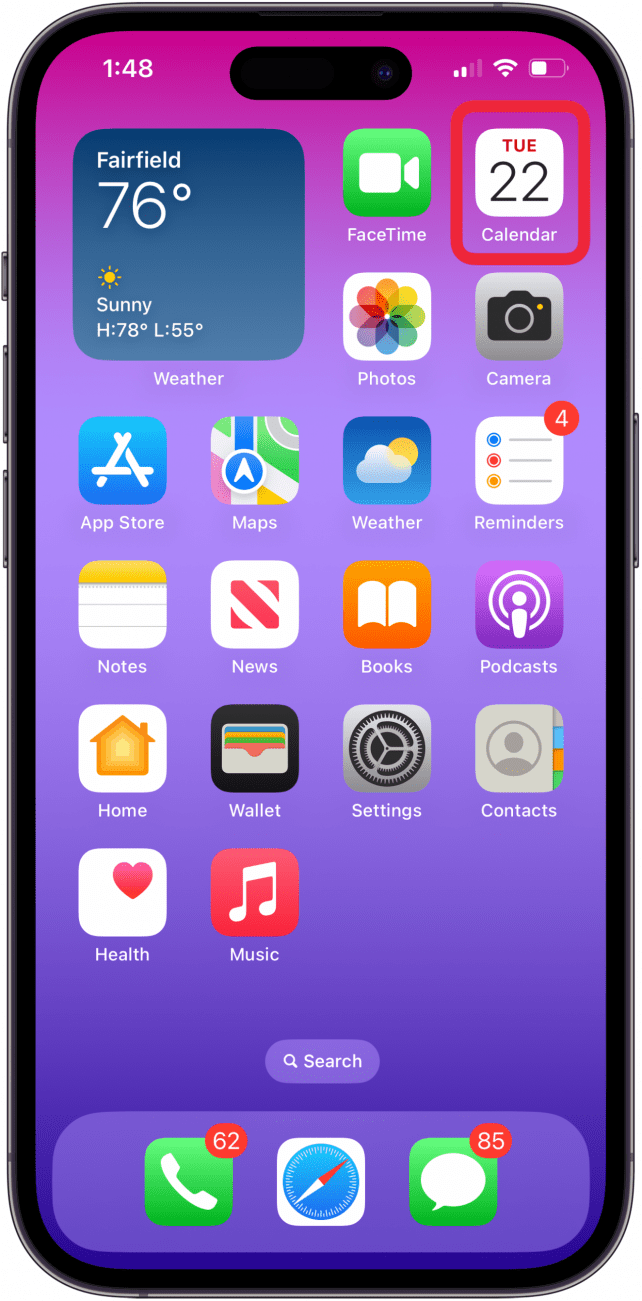 - 打开日历应用程序在你的 iPhone 上。