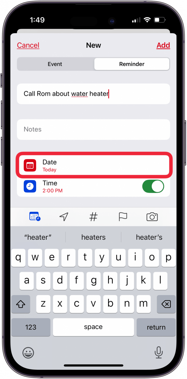 - 轻敲日期选择提醒日期。
