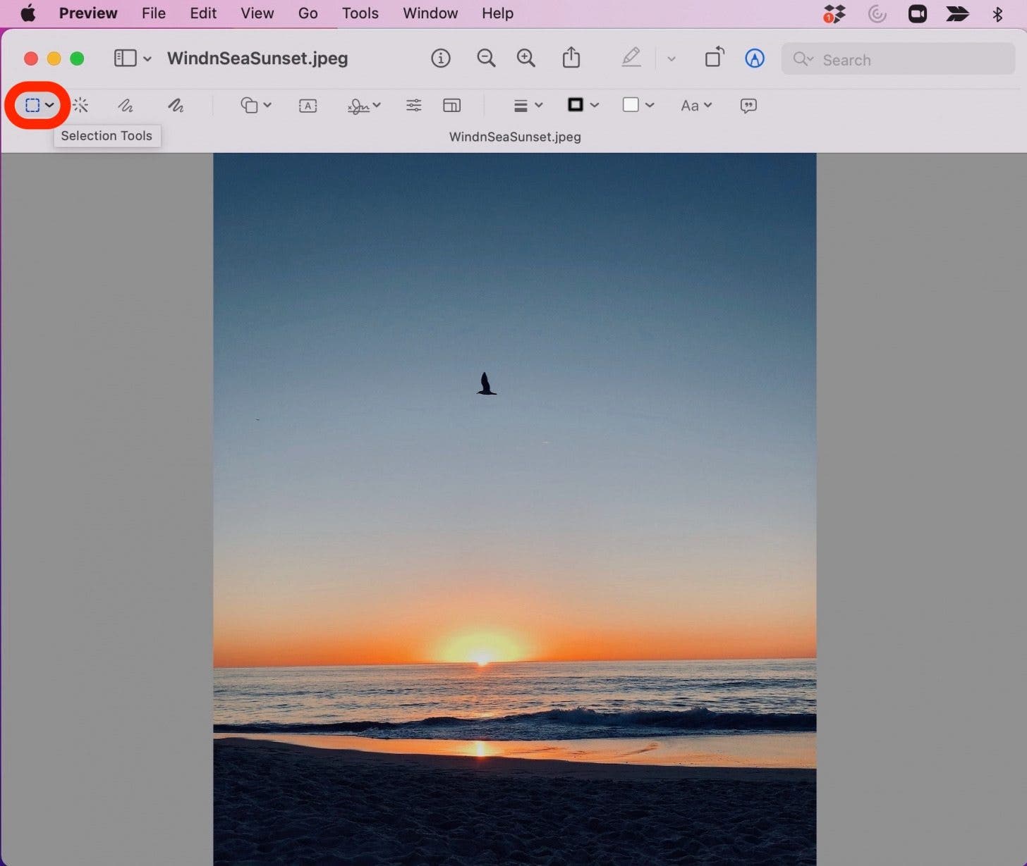 - 双击打开您要裁剪的图像。这将自动启动预览。