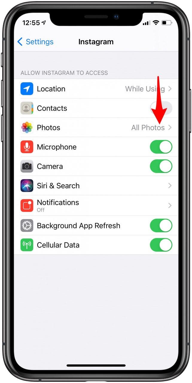 如果您的 iPhone 上已经下载了 Instagram 或 Facebook 等应用程序,您可能需要自定义“照片”应用程序对这些应用程序的访问权限。要自定义访问权限,请执行以下步骤: