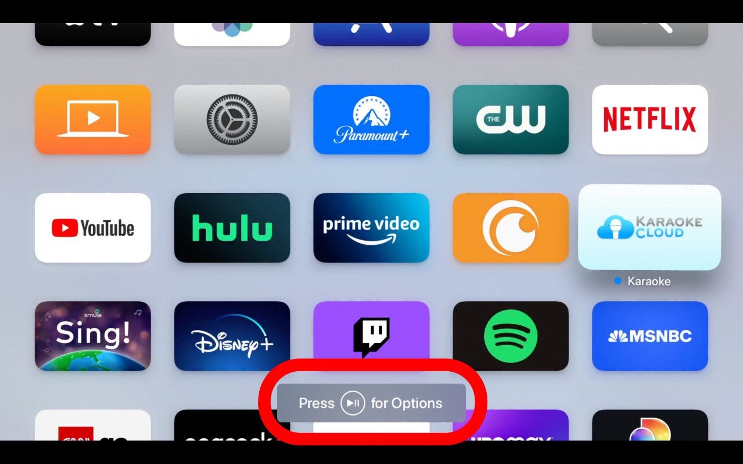 - 要删除 Apple TV 应用程序,您必须首先转到主屏幕并选择您要删除或隐藏的应用程序。