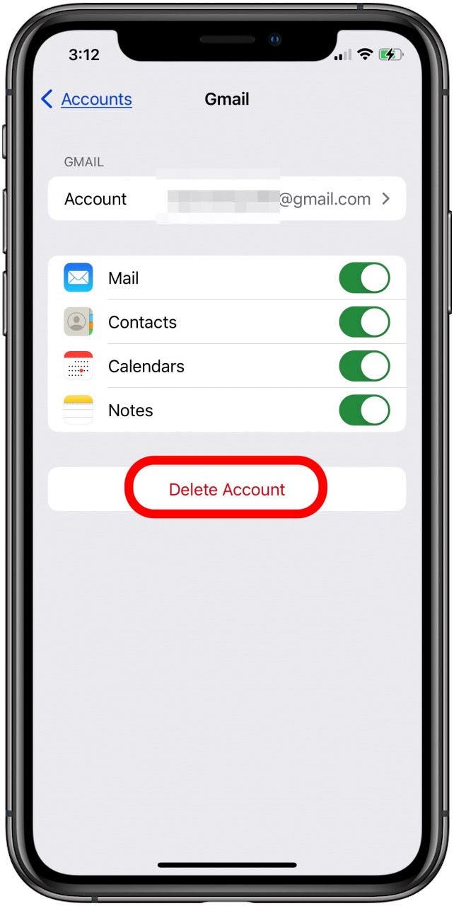 - 轻敲删除帐户如果您想删除电子邮件帐户和所有关联数据。