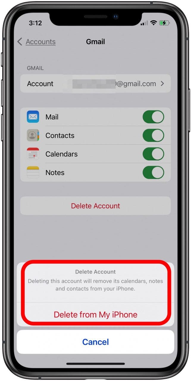 - 您可以删除任何电子邮件帐户,包括 Outlook 或 Gmail。