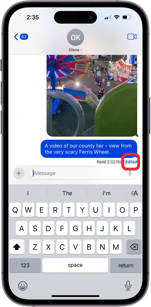 - 轻敲已编辑查看原始消息和您所做的编辑。
