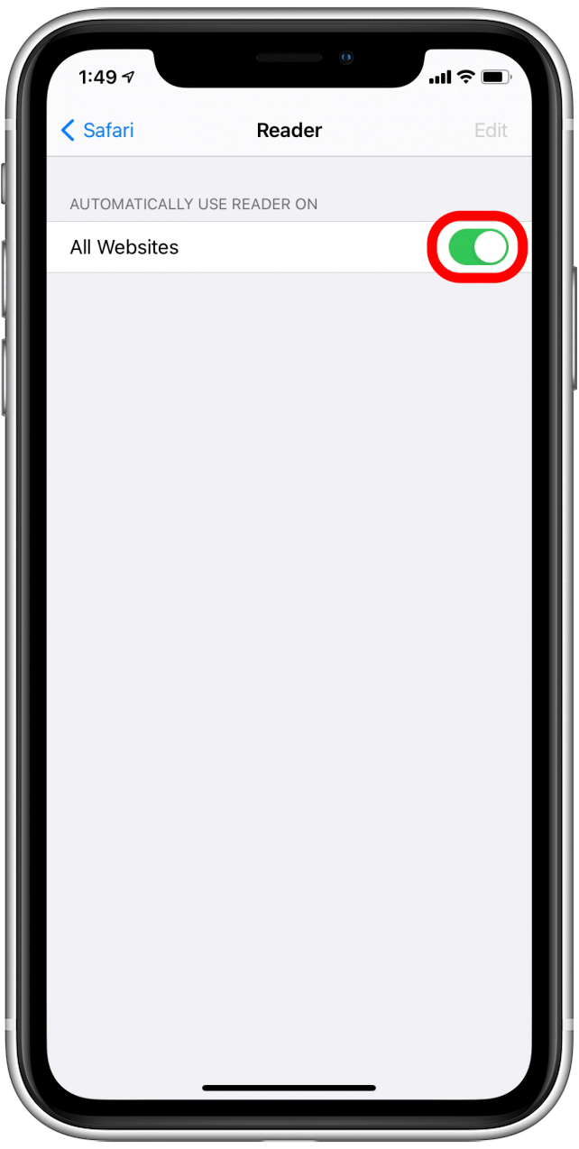 - 使用完全相同的步骤启用 Safari 阅读器视图!