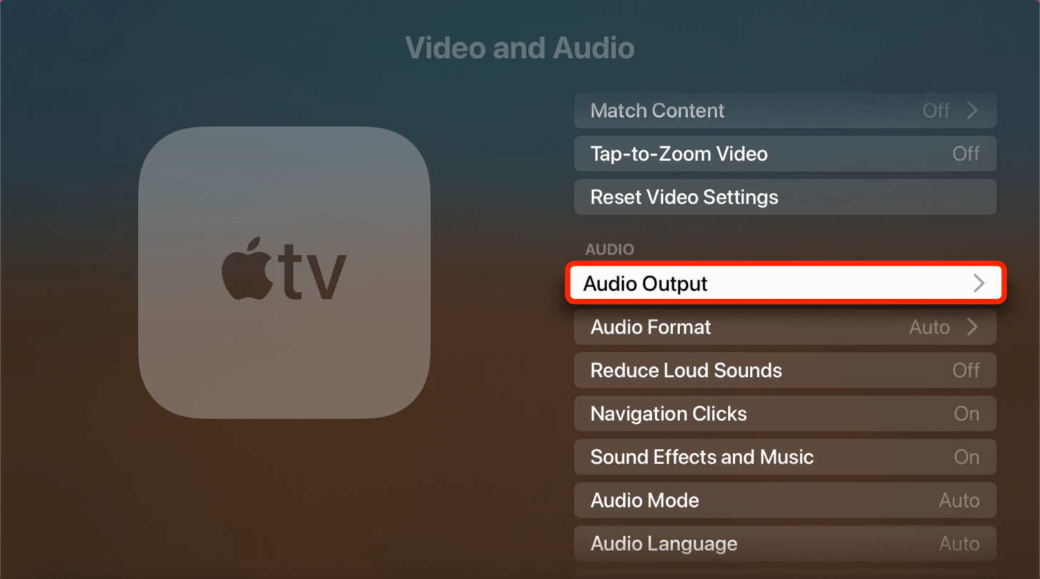- 如果上述步骤均无效,并且您正在使用电视扬声器,请考虑改回使用电视的内置扬声器。为此,请点击音频输出在音频下。