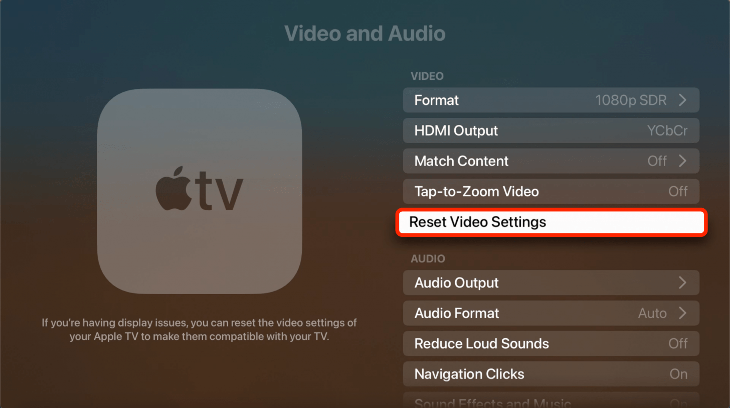 - 如果您仍然遇到音频和视频同步问题,请点击重置视频设置在视频和音频设置中。