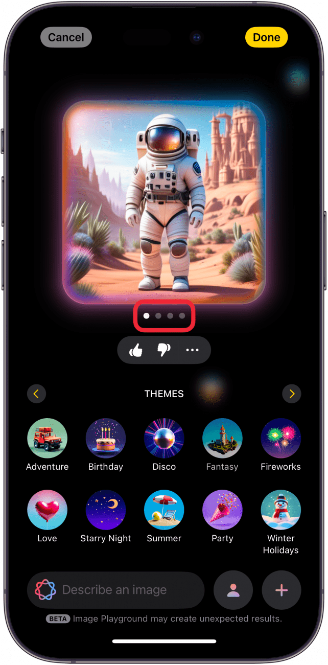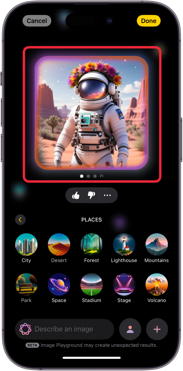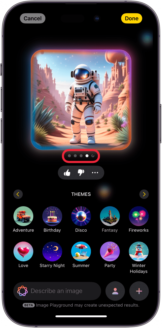 - 发生这种情况时,您可以重新生成图像以再次尝试 Apple Intelligence。