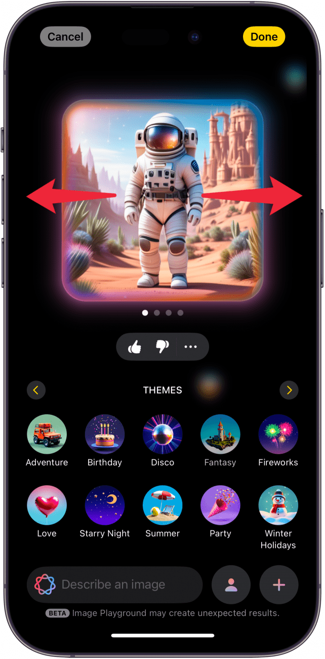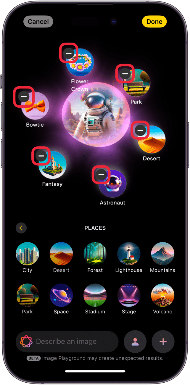 - 使用 Image Playground 创建的艺术作品可能并不总是达到预期效果。