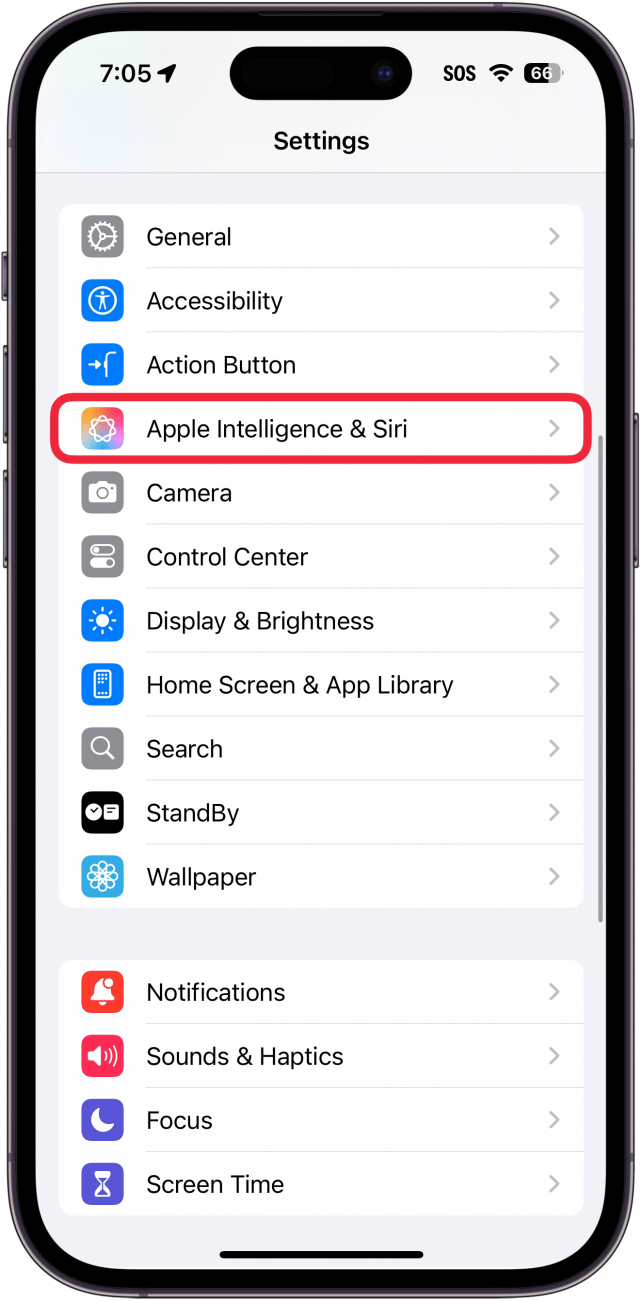 - 打开设置应用程序,然后选择Apple 智能和 Siri。