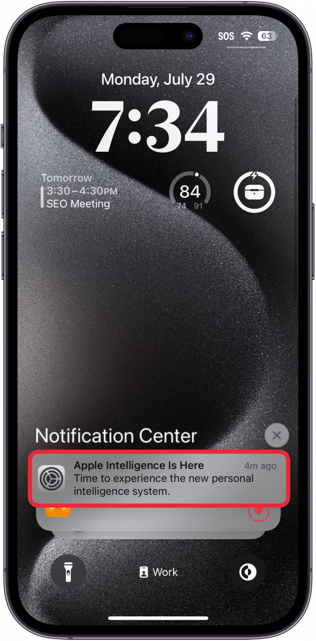 - 当 Apple Intelligence 准备好用于您的 iPhone 时,您会收到通知。