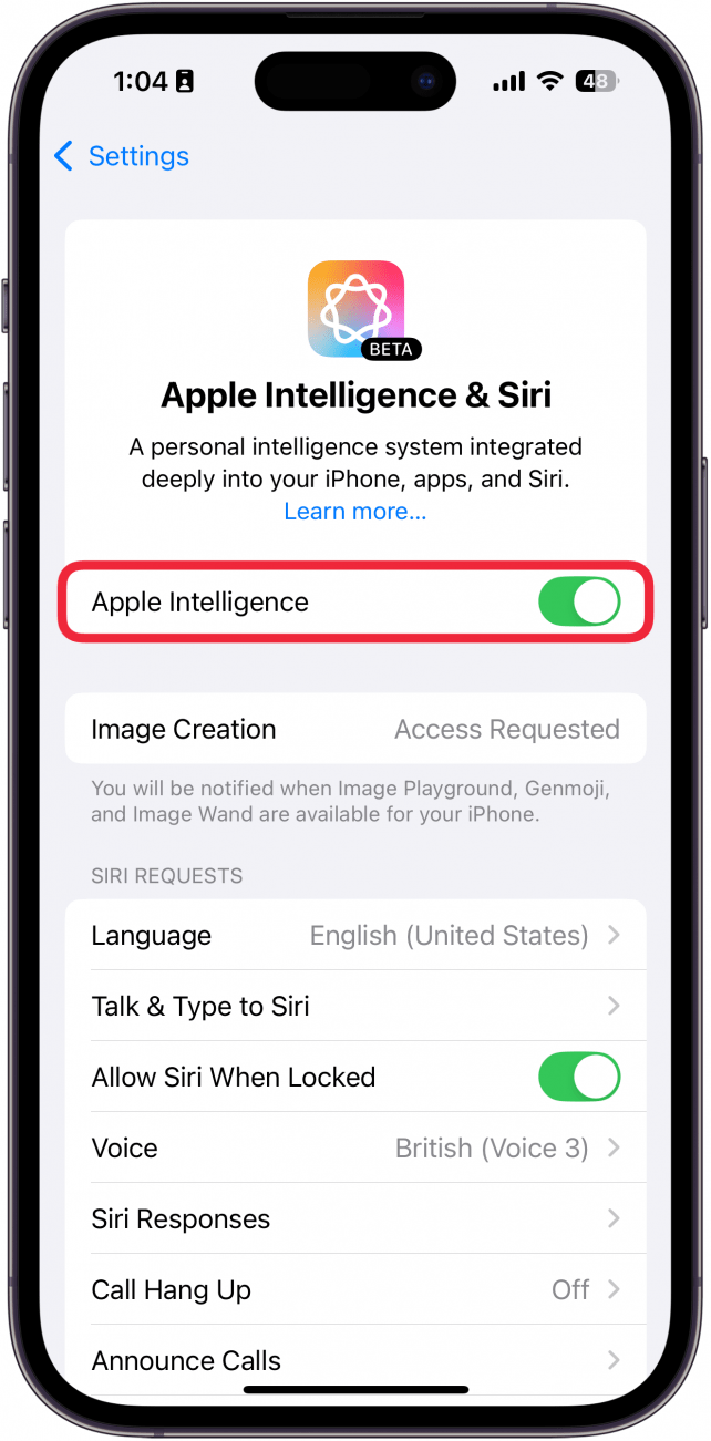 这就是获取 Apple Intelligence 的方法。启用此功能后,您就可以准备好迎接新的人工智能功能登陆您的 iPhone 了。接下来,了解一下与苹果智能。