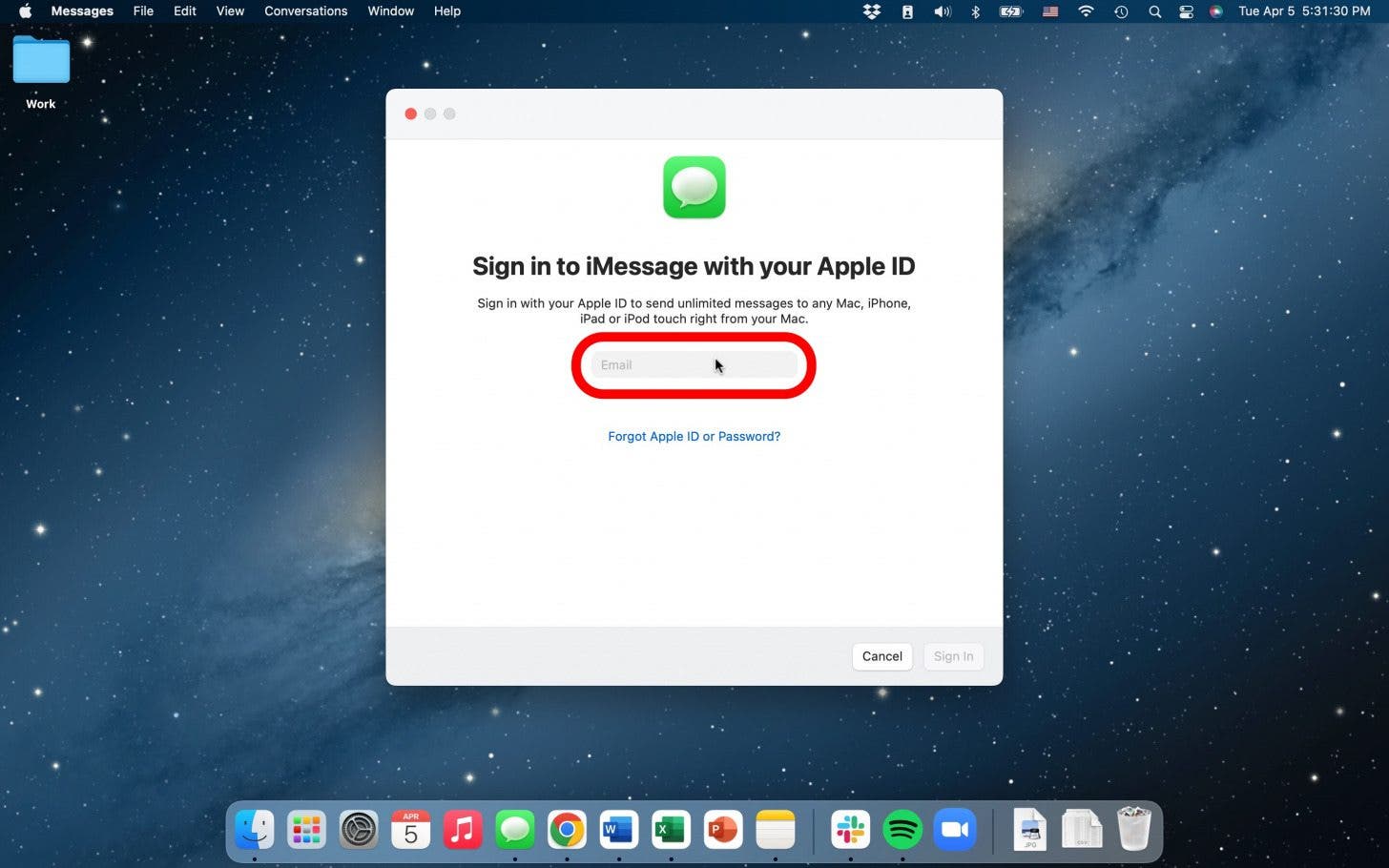 现在您需要确保您已登录 Mac 上的“信息”。为此: