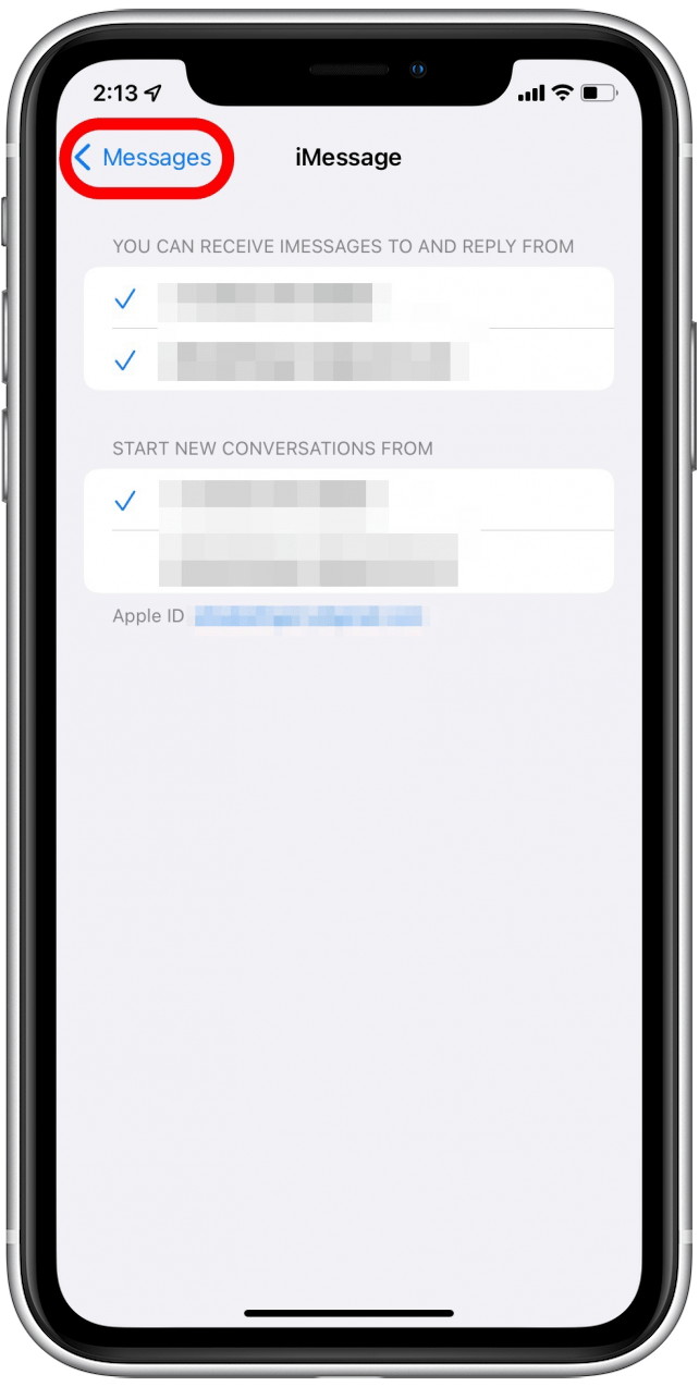 - 轻敲使用您的 Apple ID 发送 iMessage。