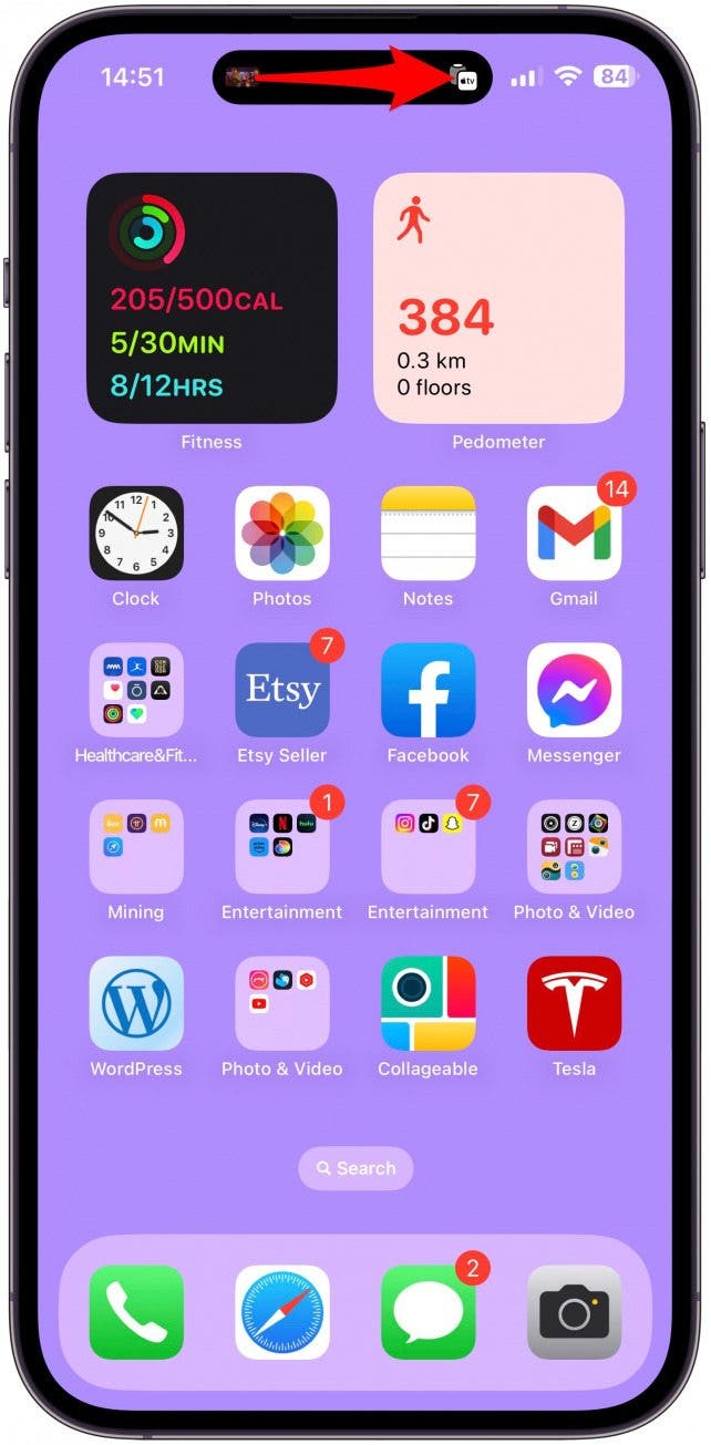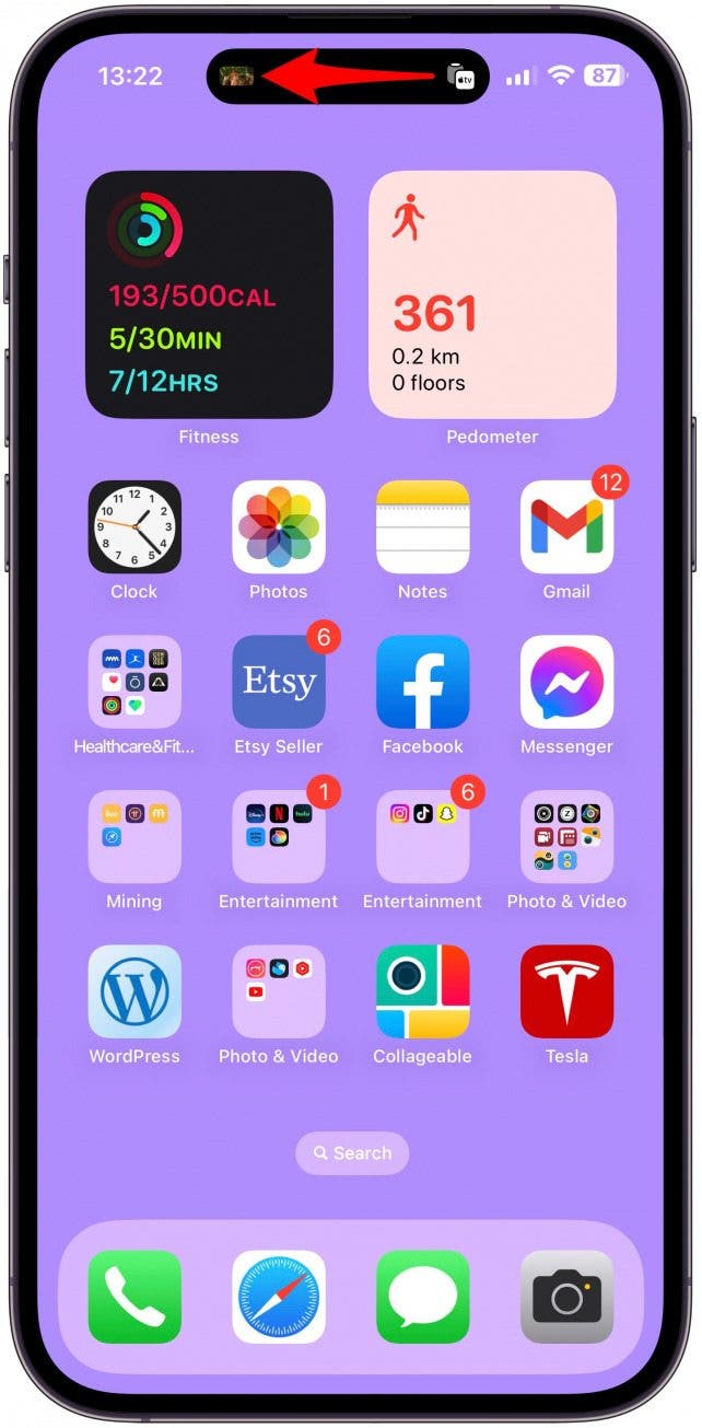 - 几分钟后,任何使用动态岛的应用程序都会自行重新出现。如果您想手动将其恢复,请从左向右滑动。
