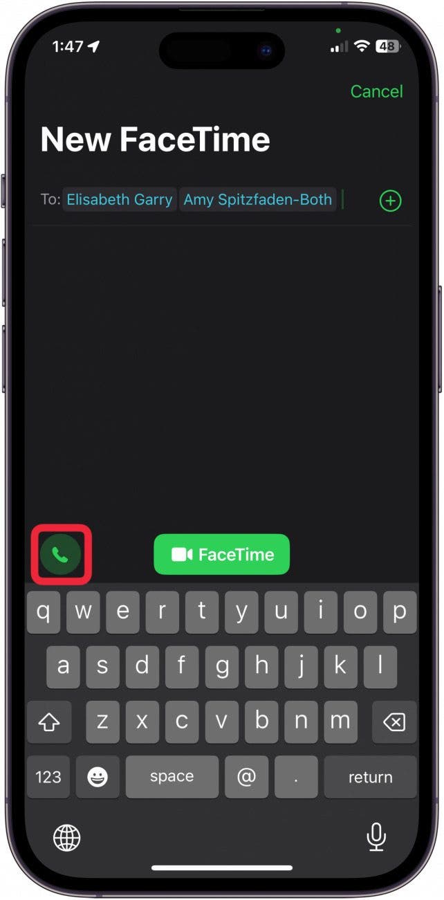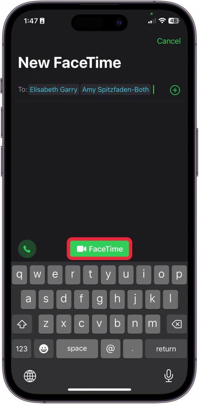 - 选择所有政党后,点击绿色FaceTime 按钮进行视频通话。