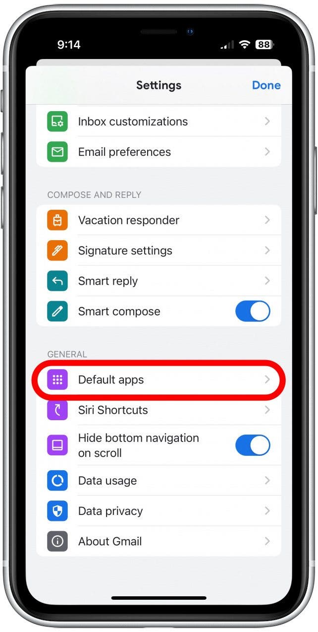 你要做的第一件事是。这意味着您拥有的任何电子邮件都将在 Gmail 应用程序中打开,因此当您将 Google 地图设置为 Gmail 的默认设置时,您也就将其设置为一般电子邮件的默认设置。您始终可以手动打开 Gmail,但将其设置为默认值会进一步自动化该过程。