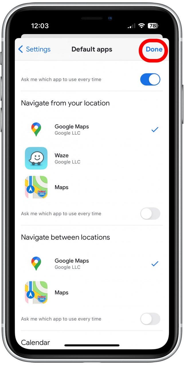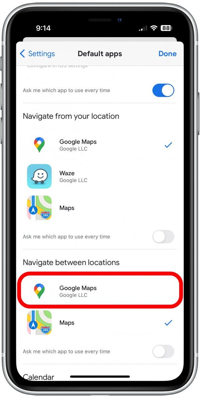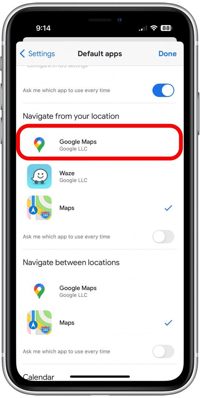- 但您可以更改 Gmail 和 Chrome 中的默认地图,这样从其中任何一个启动的任何导航都将在 Google 地图而不是 Apple 地图中打开。