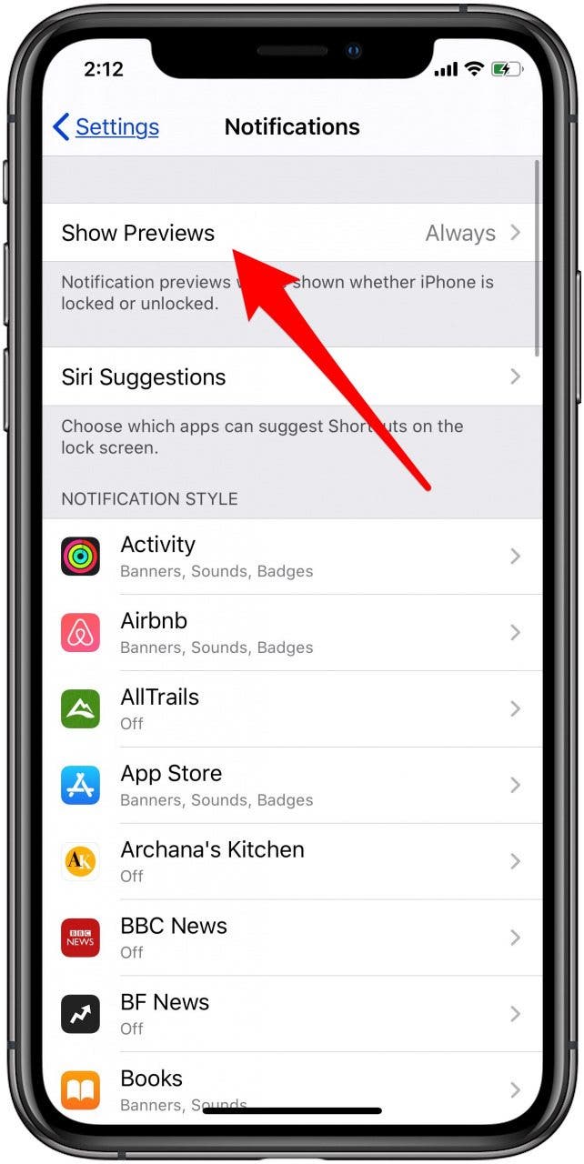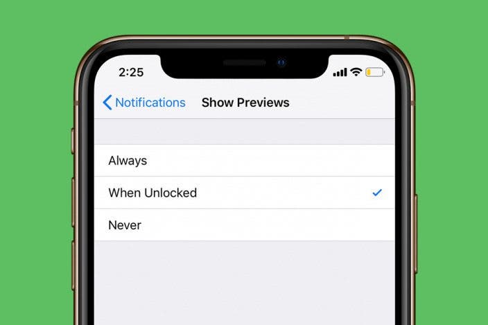 根据您想要的隐私程度,您可以将锁定屏幕通知设置为仅在 iPhone 解锁时显示,或从不显示。