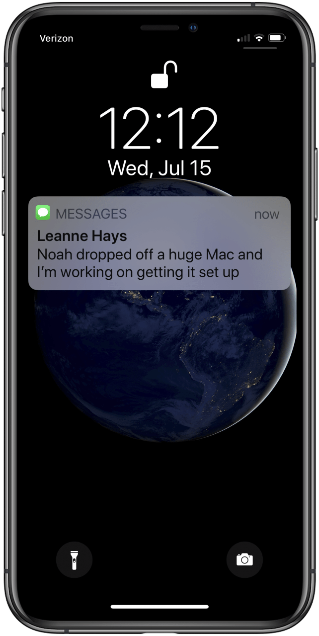 - 只需看一眼配备 Face ID 的 iPhone 或将手指放在 Touch ID 传感器上,预览文本就会出现。
