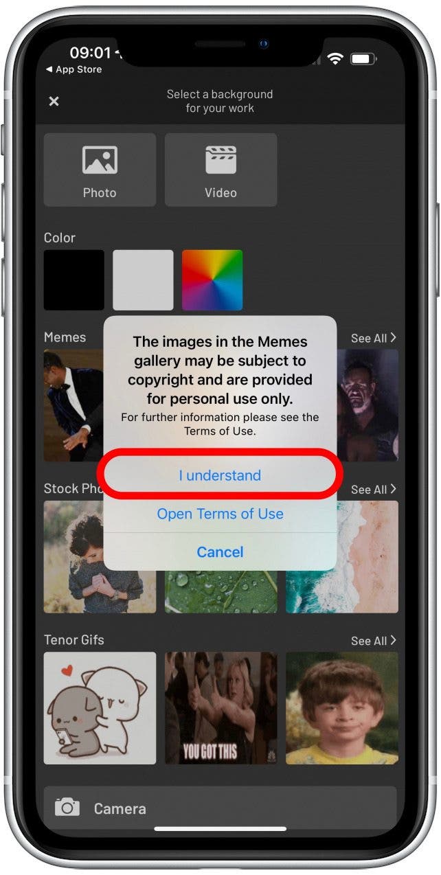 - 第一次使用它时,弹出窗口会警告您此应用程序中的图像可能受版权保护。轻敲我明白。