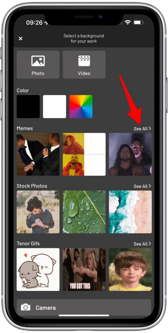 - 在顶部,您还可以选择 iPhone 中的照片或视频。