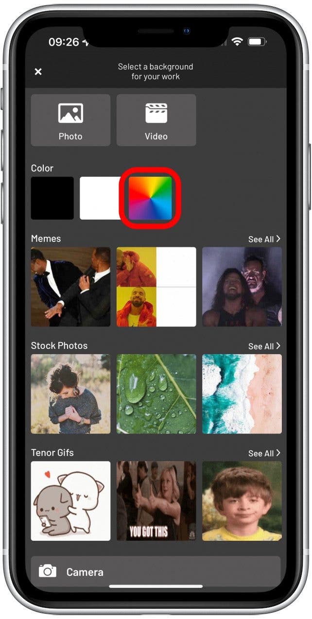 - 您还可以点击色轮以获得纯色背景,包括全白或全黑。