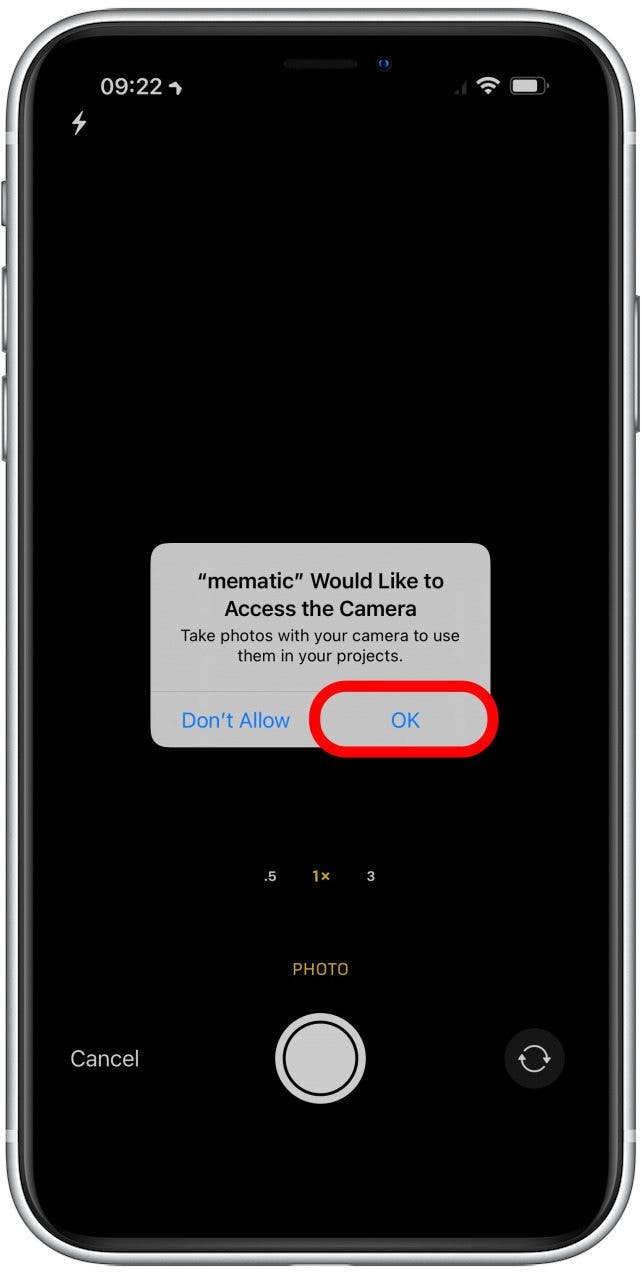 - 当您第一次点击相机时,您必须允许应用程序打开您的相机。轻敲好的。