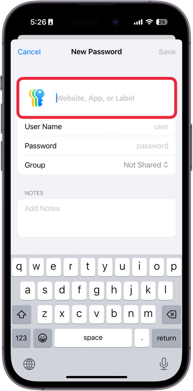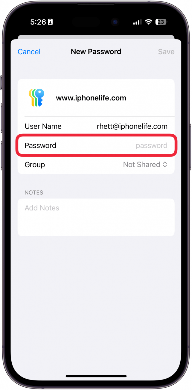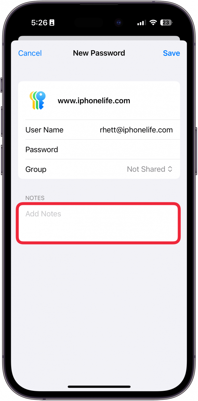 - 添加笔记如果您还想记住有关此密码的任何其他信息。