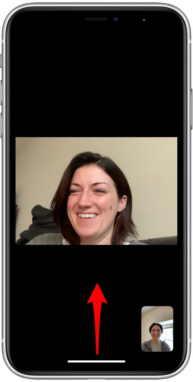 - 从 FaceTime 屏幕底部向上滑动可返回主屏幕。