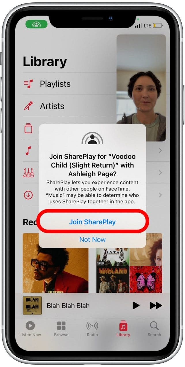 要使用 Apple SharePlay,FaceTime 通话中的所有人员都需要拥有 iPhone 或 iPad,并且已将其软件更新到 iOS 15.1 或 iPadOS 15.1。他们还需要订阅受支持的音乐流媒体服务,例如 Apple Music。目前,SharePlay 不支持 Spotify 和 YouTube。如果您想了解有关 Spotify 的更多信息,请查看我们的文章。但要通过 SharePlay 播放 Apple Music,首先您需要然后按照以下步骤操作: