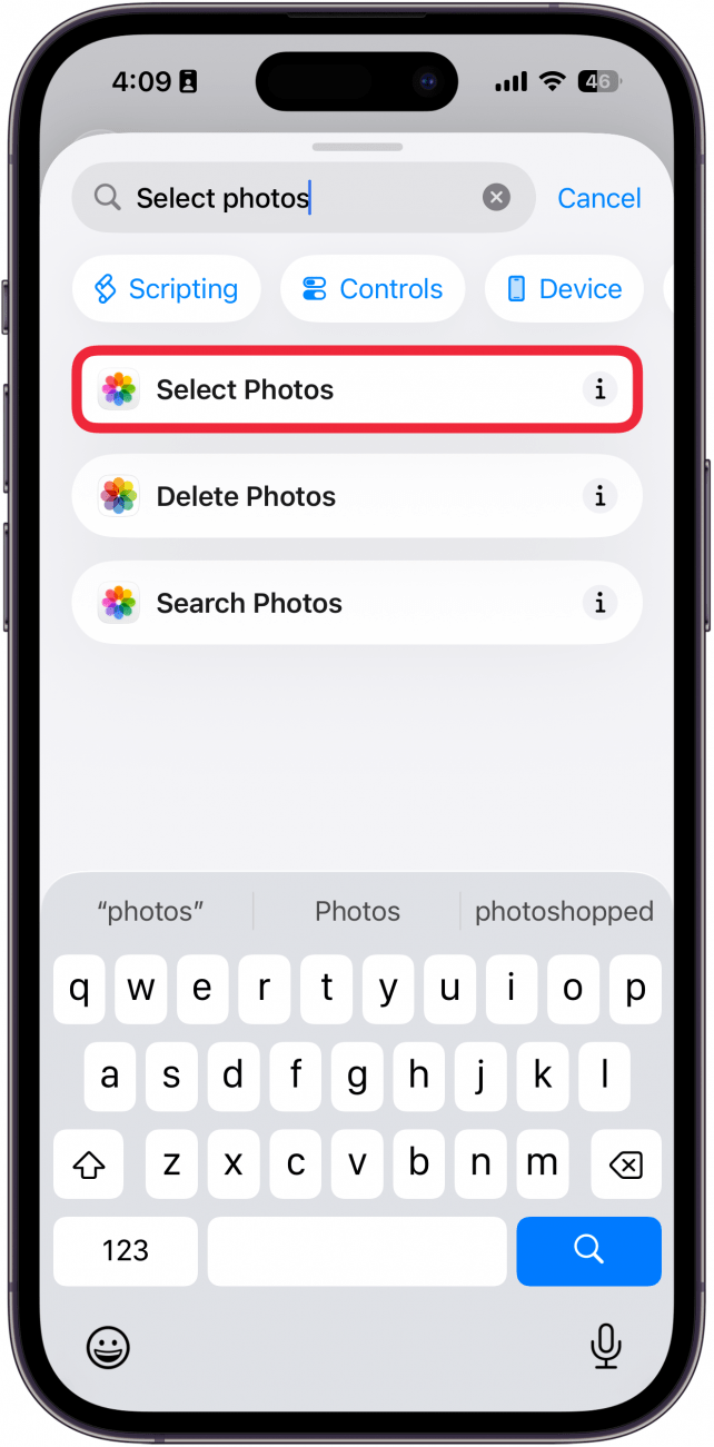 - 点击搜索栏在屏幕底部。搜索并点按选择照片。