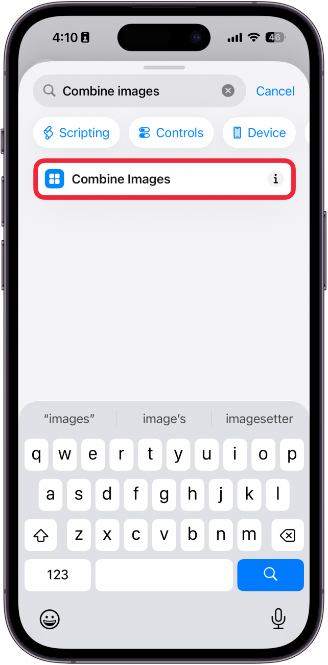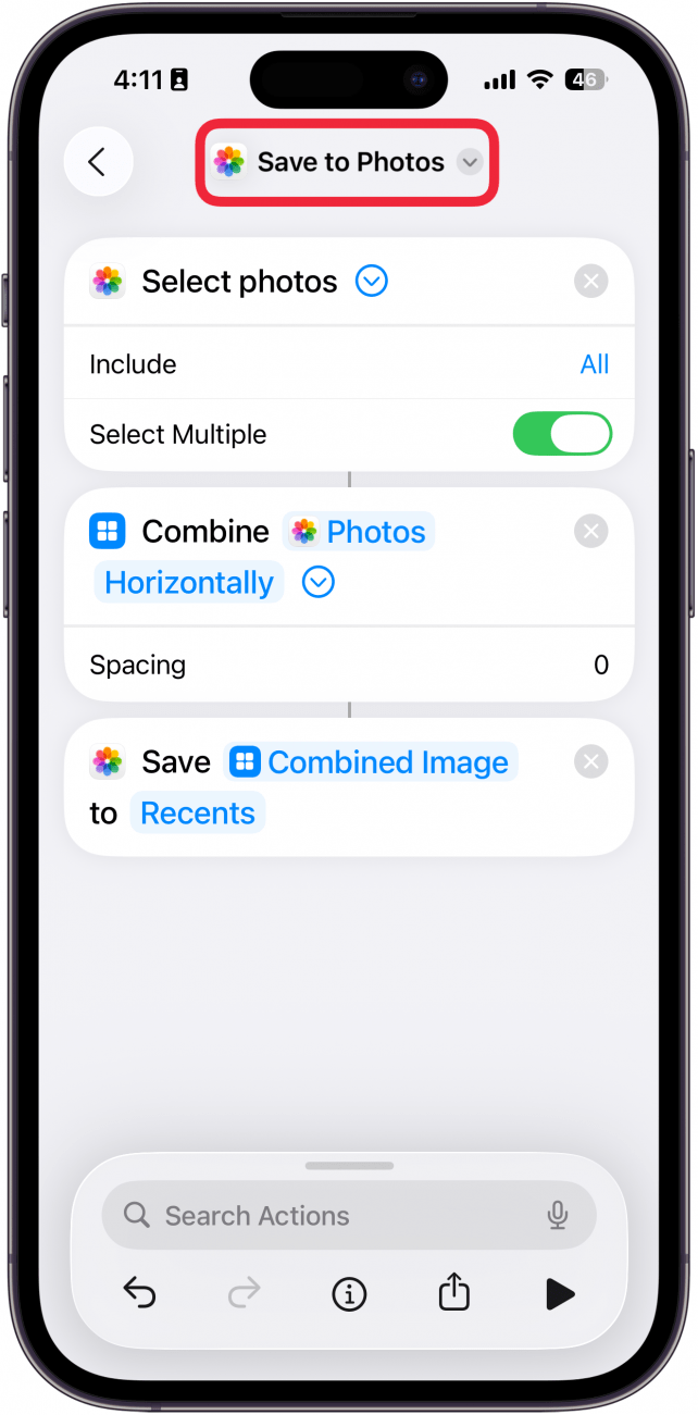现在您已经设置了合并照片的快捷方式,以下是如何使用它在 iPhone 上将两张照片合并在一起: