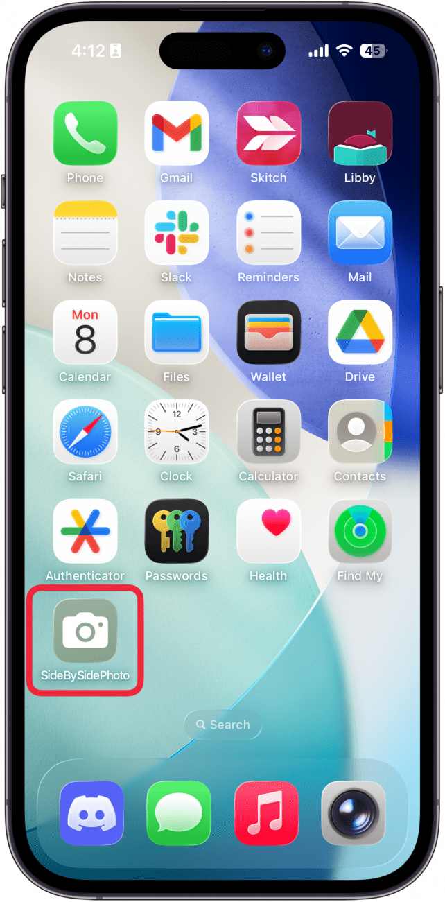 - 打开iPhone 分屏照片 捷径您已创建并添加到主屏幕。