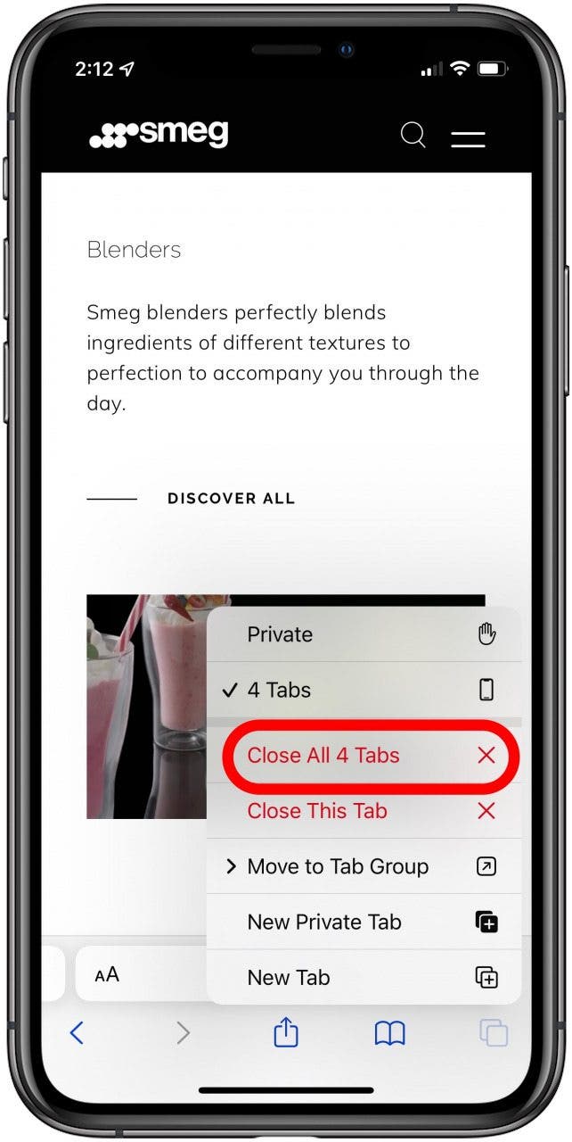 - 轻敲关闭所有 [#] 个选项卡再次。