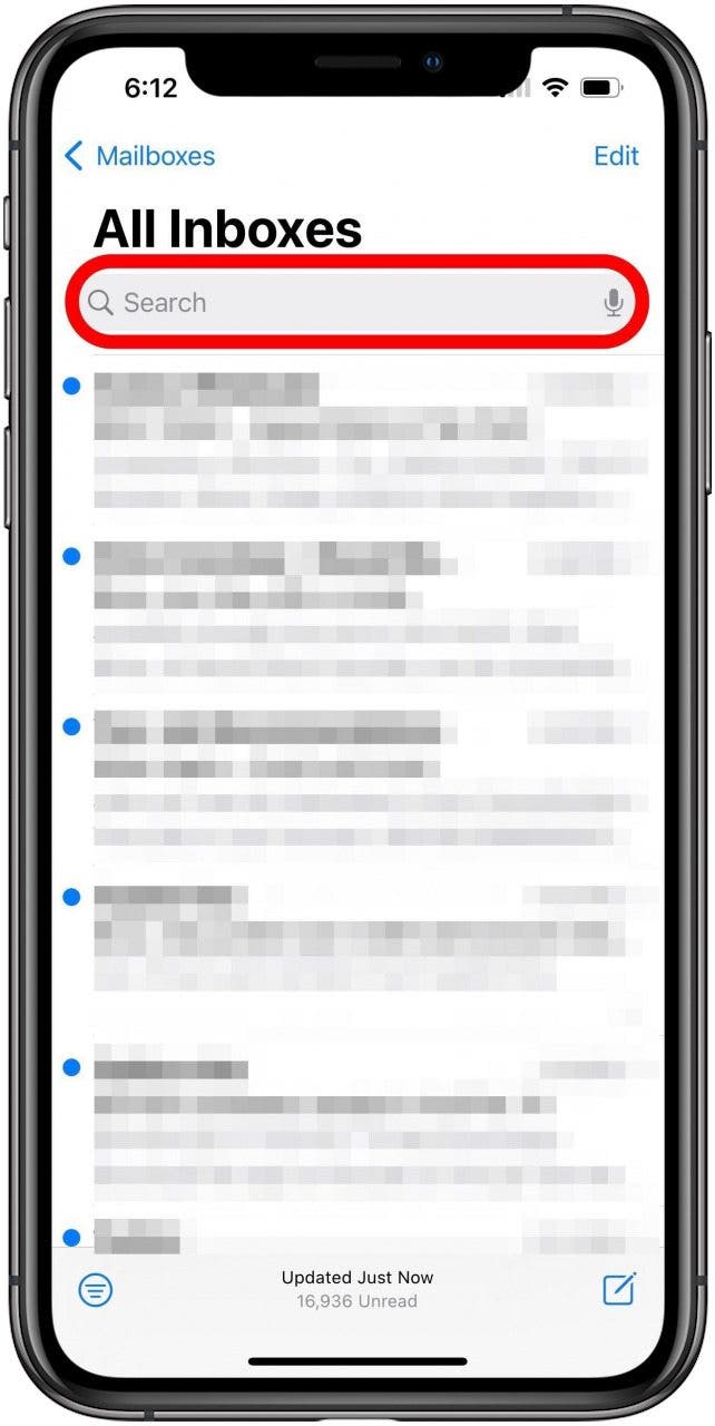 - 点击搜索栏。如果没有出现,请点击并拖动 在消息列表的下方。