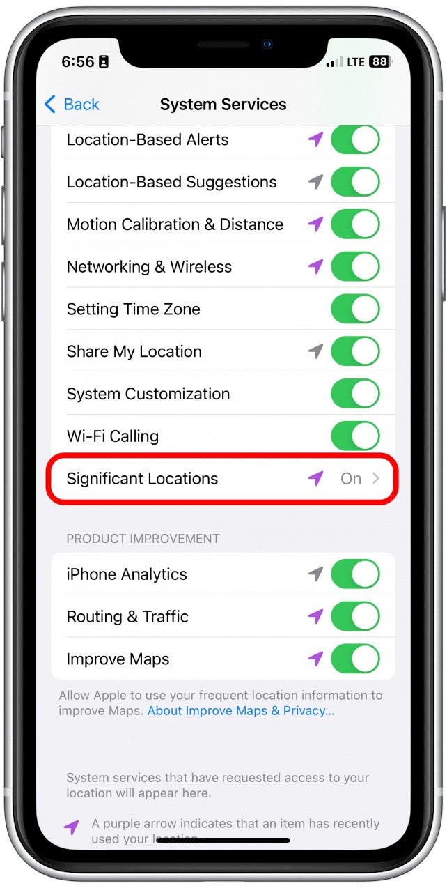 - 确保重要地点已打开。如果不是,请点击它进行更改。