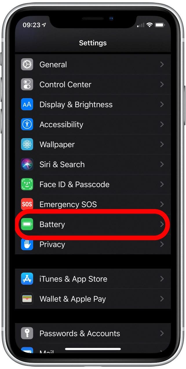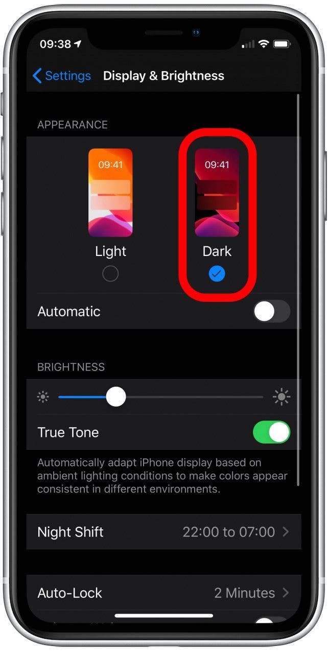 在 iPhone X 或 11 上,您可以使用深色模式为了节省电池,因为这些特定型号的 iPhone 上的屏幕使用较少的电量来绘制较暗的颜色。