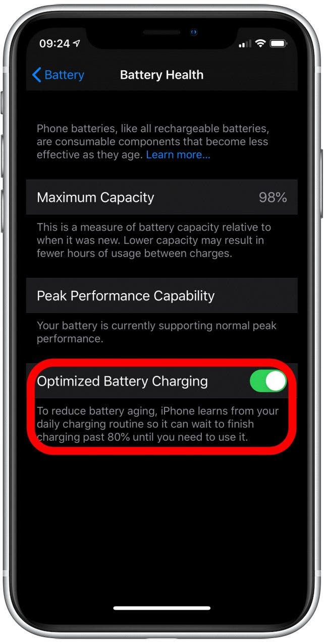减少电池使用的第二个真正重要的方法涉及 iPhone 电池健康设置。