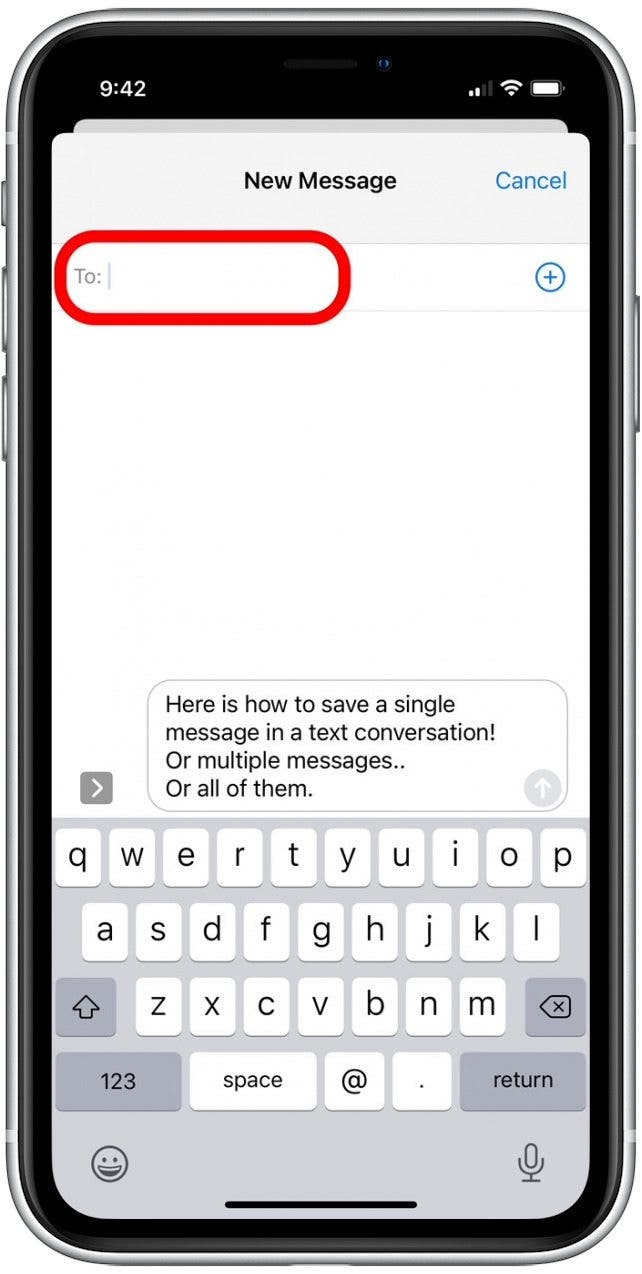 这种简单的方法非常适合保存所需的信息,例如重要事件的日期或来自朋友的善意消息。但是,请务必注意,此选项仅保存消息的文本内容,这意味着它将丢失其格式和消息时间戳。此外,它还要求您手动选择要保存的每个文本。因此,如果您希望一次保存大量消息或保存需要时间戳的法律文档文本,我建议您跳到下面的部分。保存短信的方法如下: