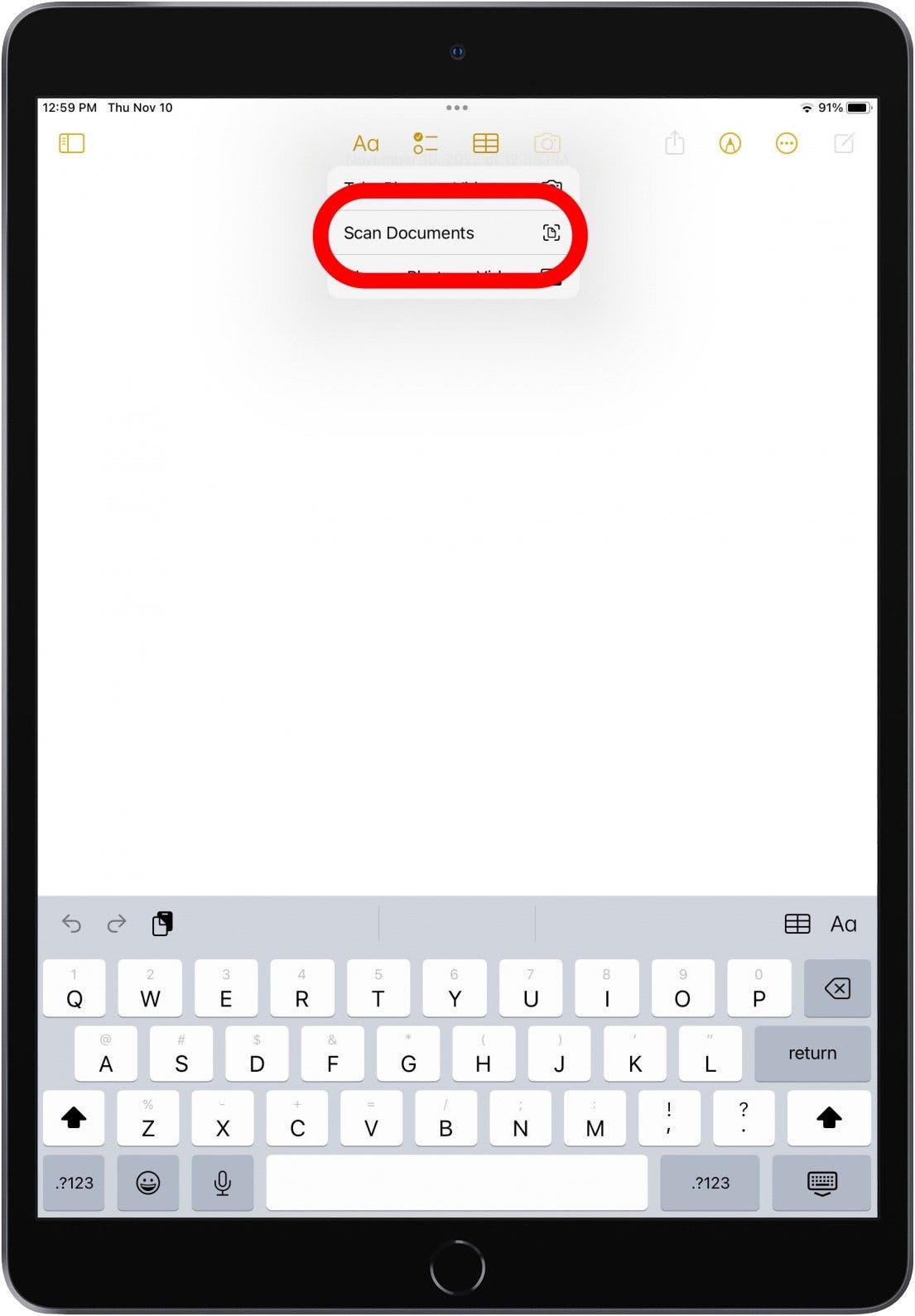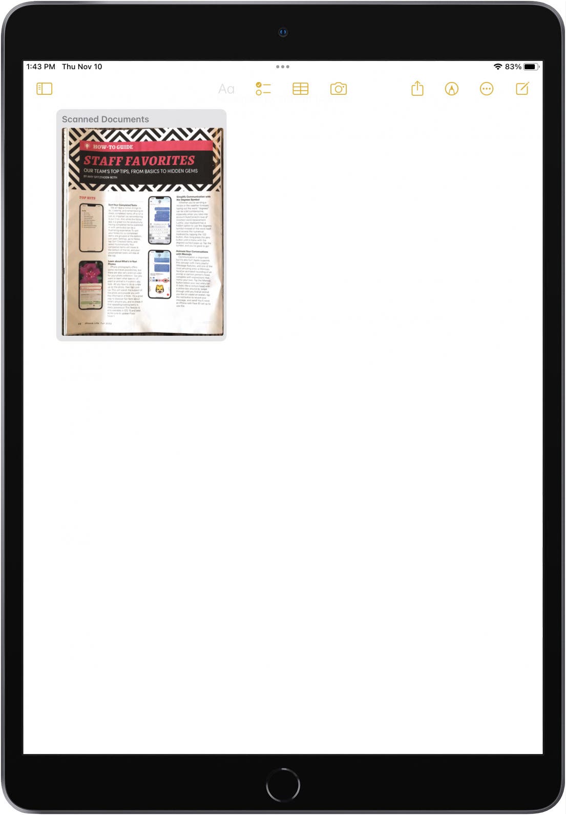 - 扫描文档并将其保存在“笔记”应用程序中,以便轻松找到它们!