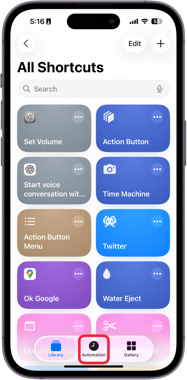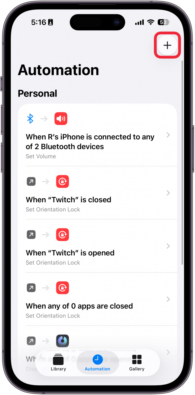 - 点击添加图标。如果您没有任何现有的自动化操作,请点击新自动化在屏幕中央。