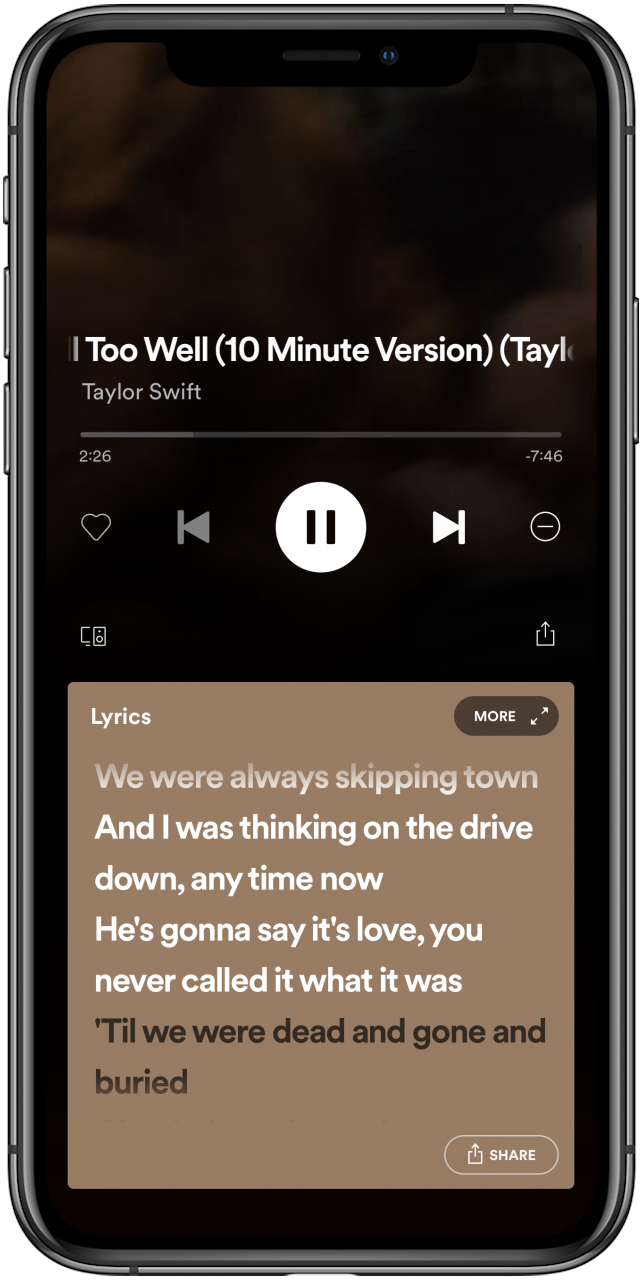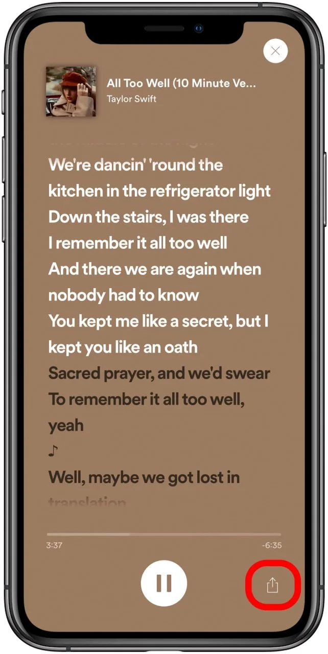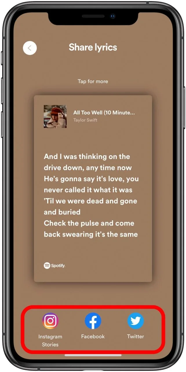 我经常在 Twitter 上发布对我有意义的歌词,但从 Spotify 分享它们的图片也是另一个不错的选择!以下是分享 Spotify 歌词的方法: